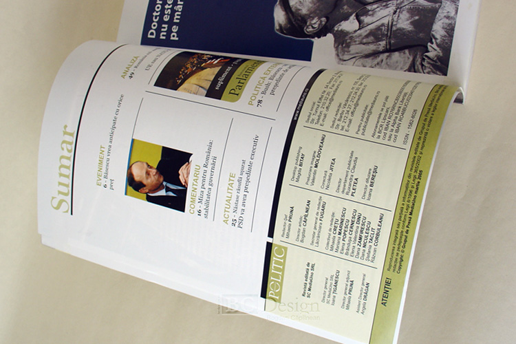 Realizare coperta si  layout interior pentru revistele Parometrul Politic, Micul Paris, Barometrul Social, Barometrul Medical, Ora Romaniei, New Europe, RCI – publicatii ale grupului de presa Mediauno.
