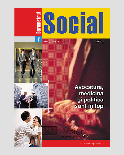 Realizare coperta si layout interior pentru revistele Barometrul Social, RCI, Parometrul Politic, Micul Paris, Barometrul Medical, Ora Romaniei, New Europe – publicatii ale grupului de presa Mediauno.